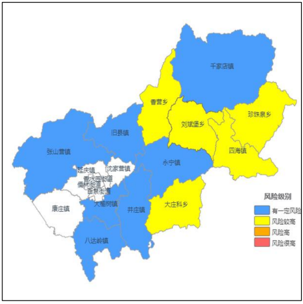 市规划自然资源委延庆分局、延庆区气象局2025年8月18日14时联合发布:自2025年8月18日20时至2025年8月19日20时启远网,延庆区千家店镇、永宁镇、旧县镇、张山营镇、井庄镇、大榆树镇、八达岭镇有发生滑坡、崩塌、泥石流等地质灾害的风险(蓝色预警),香营乡、四海镇、珍珠泉乡、刘斌堡乡、大庄科乡发生滑坡、崩塌、泥石流等地质灾害的风险较高(黄色预警)启远网,特发布地质灾害气象风险黄色预警。请注意防范。