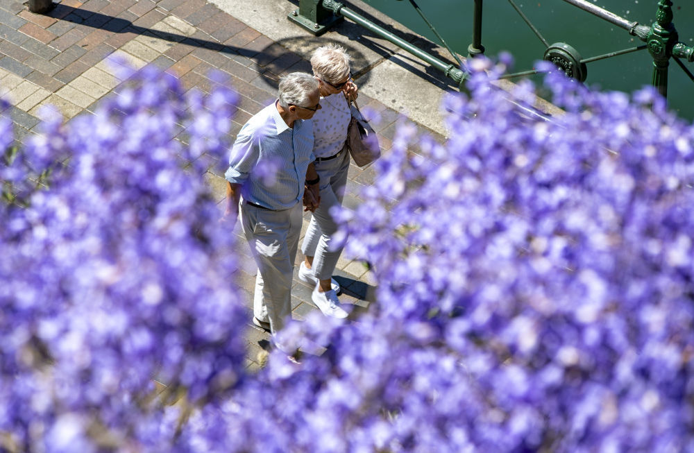 2022年11月7日,在澳大利亚悉尼,人们从蓝花楹树下走过。新华社记者白雪飞摄
